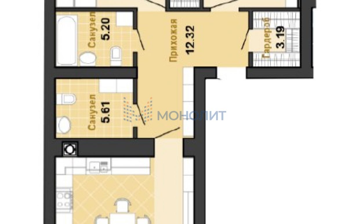Фишкой данной квартиры является просторная кухня-столовая, в которой вы будете встречать рассветы за завтраком и провожать закаты за ужином с любимой семьей и друзьями, ведь здесь для всех хватит места.