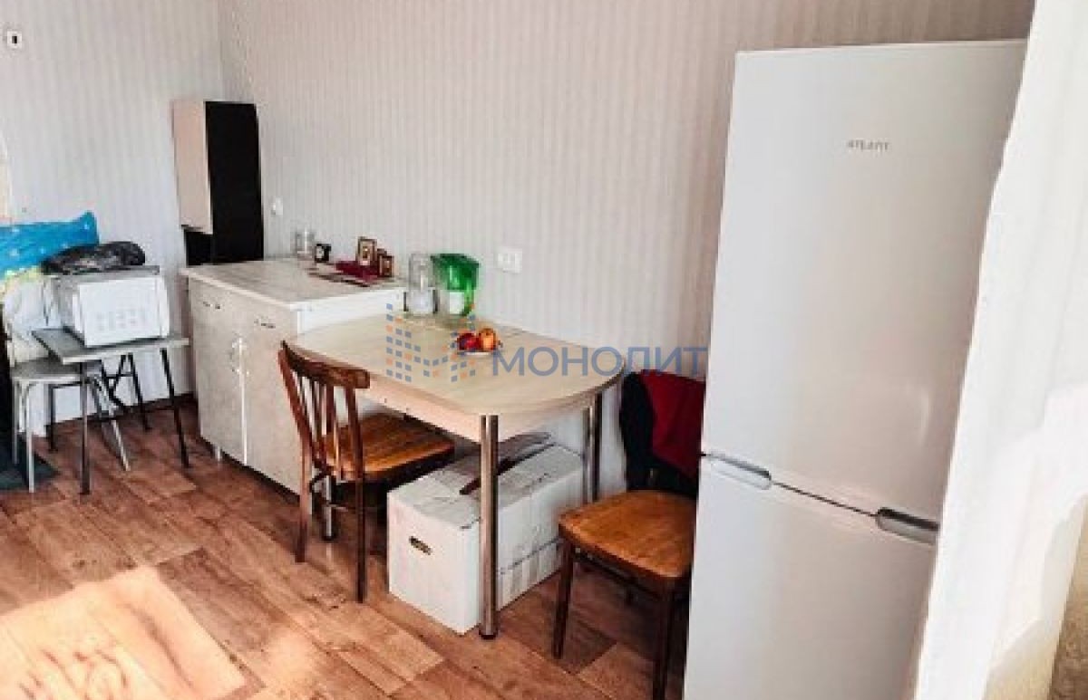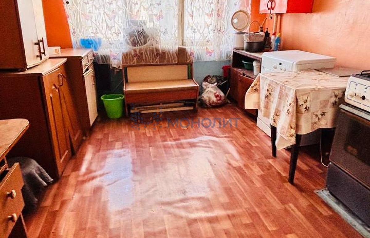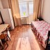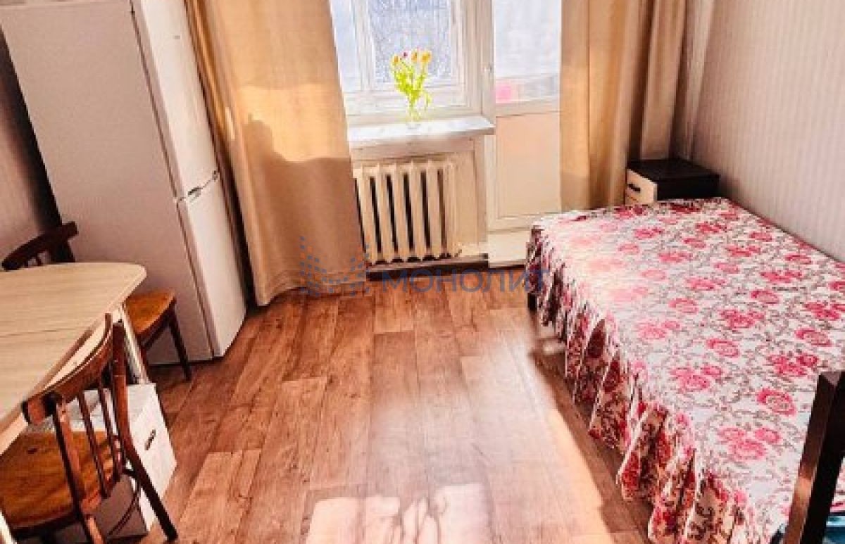 Сама комната светлая, теплая, пластиковое окно, натяжной потолок, на полу линолеум, пол не скрипит.