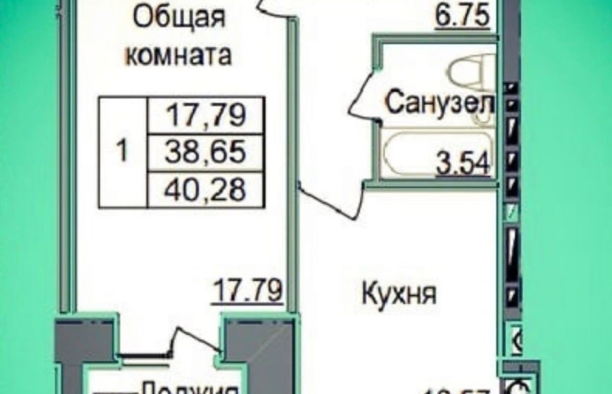 1-комнатная квартира, 40.5 м² - Объект 1821493