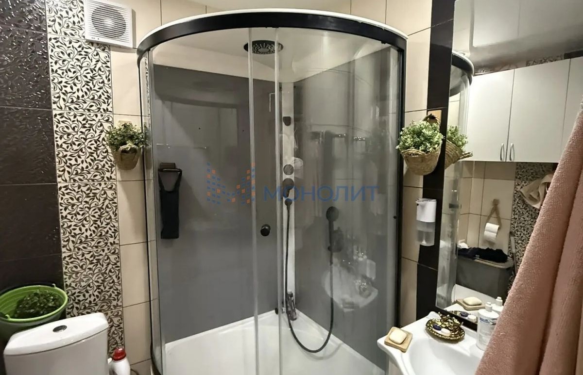 В ванной комнате установлена новая современная душевая кабинка.