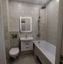 Совмещенный, просторный санузел отделан современным кафелем в светлом оттенке.