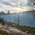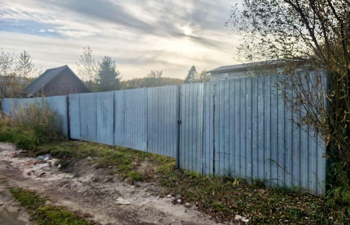 Участок поднят, правильной формы, по периметру установлен двухметровый забор из профнастила.