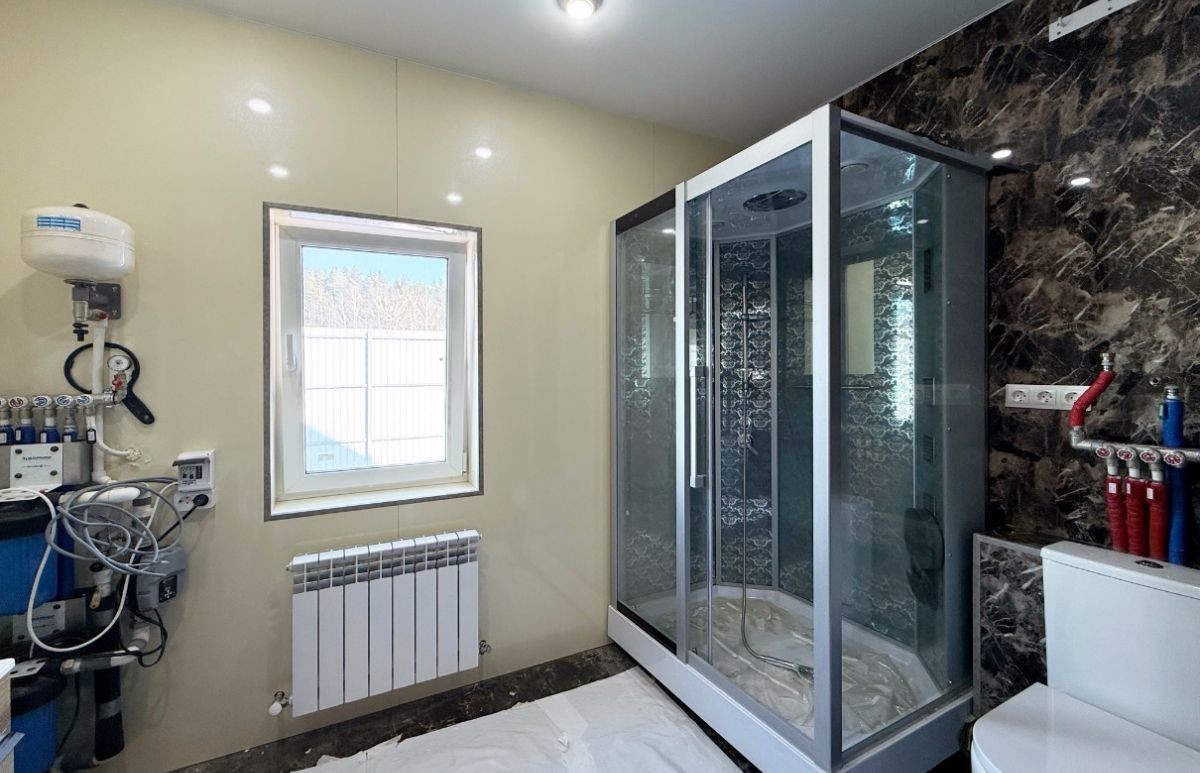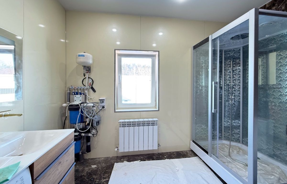 Все коммуникации выведены в торец дома для возможности пристроить баню, сауну.