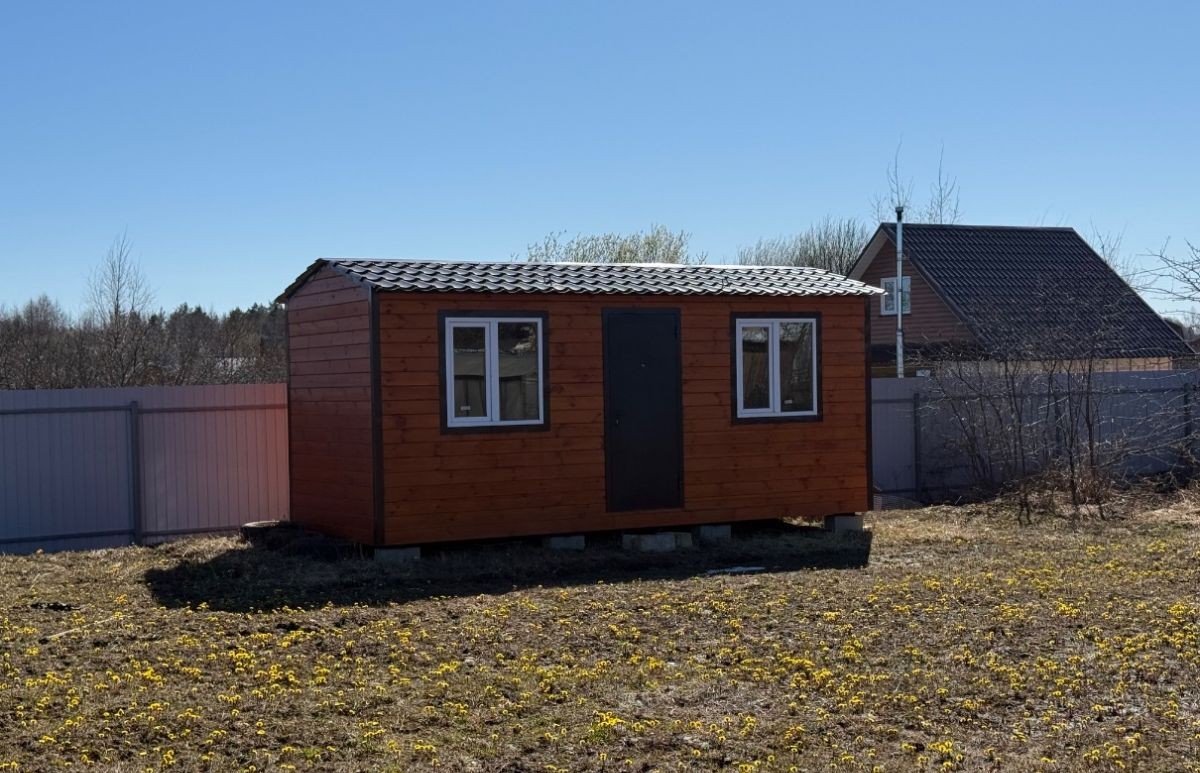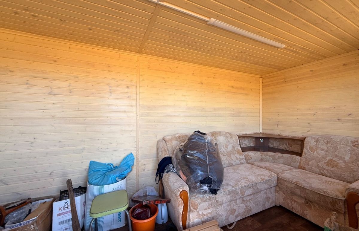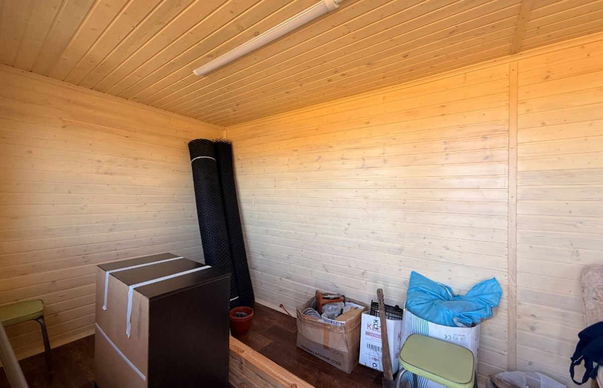 На территории участка расположен новый садовый домик. Столб с электричеством рядом с участком.